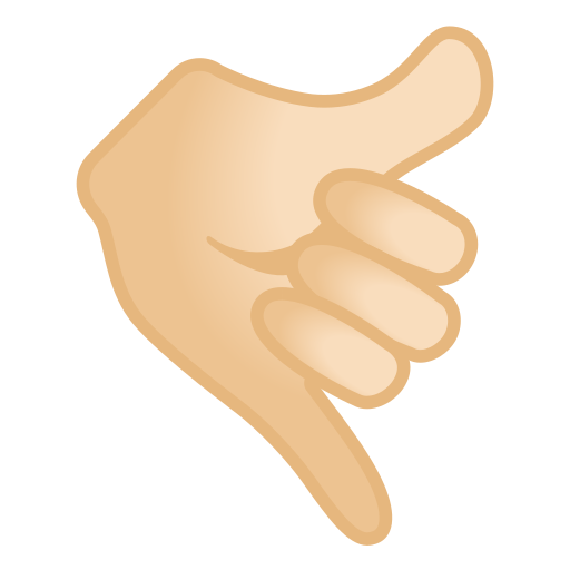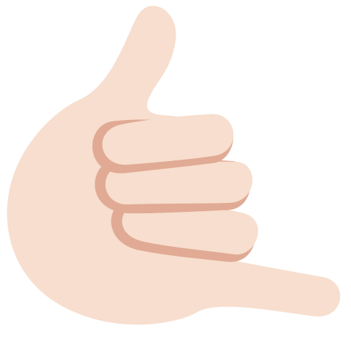 This is a variant of the Call Me Hand Emoji with a light skin tone applied. The Call Me Hand: Light Skin Tone Emoji was added to the Skin tones category in 2016 as part of Emoji 3.0 standard. This is a fairly fresh emoji, so its support may be limited on some devices.