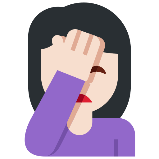 | Français | personne avec la paume sur le visage : peau claire | exaspération, paume de main, personne avec la paume sur le visage, visage, peau claire |