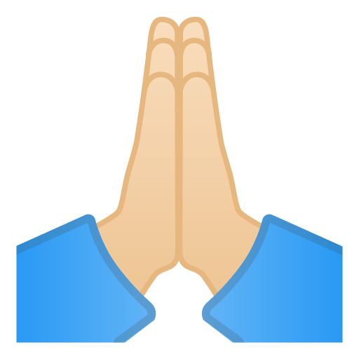 This is a variant of the Praying Hands Emoji / Folded Hands Emoji with a light skin tone applied. The Folded Hands: Light Skin Tone Emoji was added to the Skin tones category in 2016 as part of Emoji 3.0 standard. This is a fairly fresh emoji, so its support may be limited on some devices.
