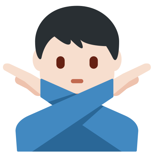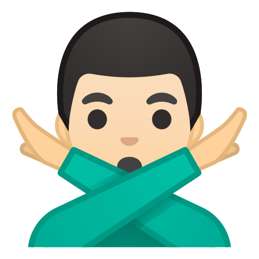 This is a male-gendered variant of the Person Gesturing No Emoji with a light skin tone applied. The Man Gesturing No: Light Skin Tone Emoji was added to the Skin tones category in 2016 as part of Emoji 4.0 standard. This is a fairly fresh emoji, so its support may be limited on some devices.