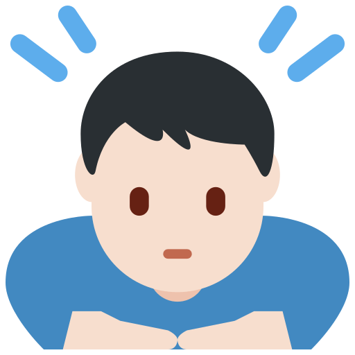 This is a variant of the Person Bowing Emoji with a light skin tone applied. The Person Bowing: Light Skin Tone Emoji was added to the Skin tones category in 2016 as part of Emoji 3.0 standard. This is a fairly fresh emoji, so its support may be limited on some devices.