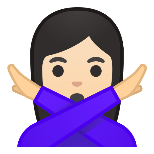This is a variant of the Person Gesturing No Emoji with a light skin tone applied. The Person Gesturing No: Light Skin Tone Emoji was added to the Skin tones category in 2016 as part of Emoji 3.0 standard. This is a fairly fresh emoji, so its support may be limited on some devices.