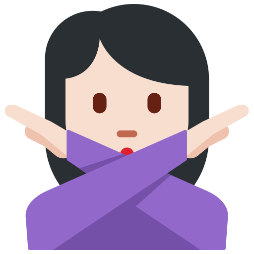 | Français | personne faisant un geste d’interdiction : peau claire | interdit, personne faisant un geste d’interdiction, peau claire |