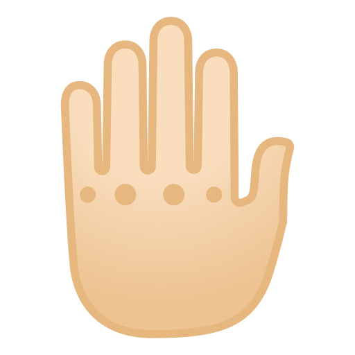 This is a variant of the Raised Back of Hand Emoji with a light skin tone applied. The Raised Back of Hand: Light Skin Tone Emoji was added to the Skin tones category in 2016 as part of Emoji 3.0 standard. This is a fairly fresh emoji, so its support may be limited on some devices.