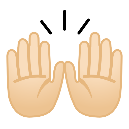 | Deutsch | zwei erhobene Handflächen: helle Hautfarbe | feiern, zwei erhobene Handflächen, helle Hautfarbe |