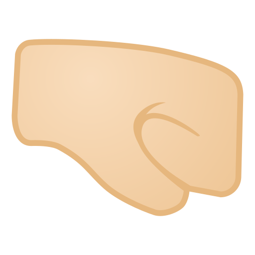 This is a variant of the Right-Facing Fist Emoji with a light skin tone applied. The Right-Facing Fist: Light Skin Tone Emoji was added to the Skin tones category in 2016 as part of Emoji 3.0 standard. This is a fairly fresh emoji, so its support may be limited on some devices.