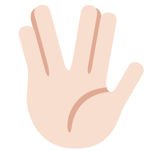 This is a variant of the Vulcan Salute Emoji with a light skin tone applied. The Vulcan Salute: Light Skin Tone Emoji was added to the Skin tones category in 2016 as part of Emoji 3.0 standard. This is a fairly fresh emoji, so its support may be limited on some devices.