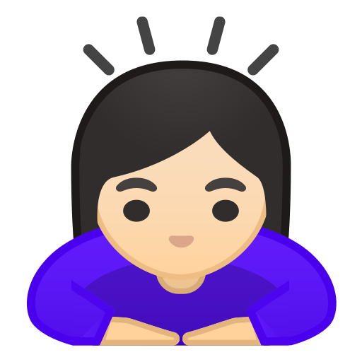 This is a female-gendered variant of the Person Bowing Emoji with a light skin tone applied. The Woman Bowing: Light Skin Tone Emoji was added to the Skin tones category in 2016 as part of Emoji 4.0 standard. This is a fairly fresh emoji, so its support may be limited on some devices.