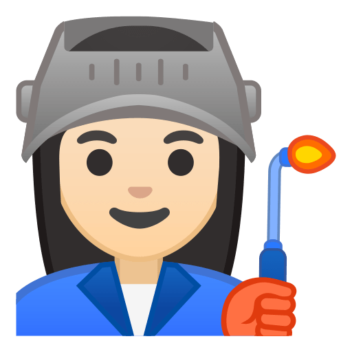 This is a variant of the Woman Factory Worker Emoji with a light skin tone applied. The Woman Factory Worker: Light Skin Tone Emoji was added to the Skin tones category in 2016 as part of Emoji 4.0 standard. This is a fairly fresh emoji, so its support may be limited on some devices.