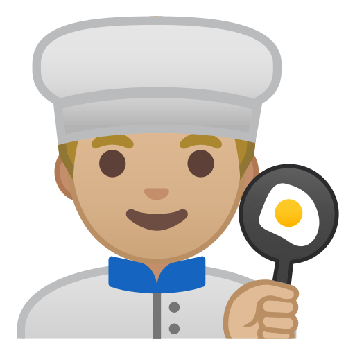 This is a variant of the Man Cook Emoji with a medium-light skin tone applied. The Man Cook: Medium-Light Skin Tone Emoji was added to the Skin tones category in 2016 as part of Emoji 4.0 standard. This is a fairly fresh emoji, so its support may be limited on some devices.
