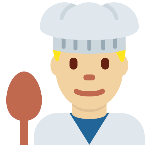 | Français | cuisinier : peau moyennement claire | chef, cuisinier, homme, peau moyennement claire |