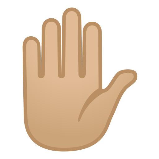 This is a variant of the Hand Emoji / Raised Hand Emoji with a medium-light skin tone applied. The Raised Hand: Medium-Light Skin Tone Emoji was added to the Skin tones category in 2016 as part of Emoji 3.0 standard. This is a fairly fresh emoji, so its support may be limited on some devices.