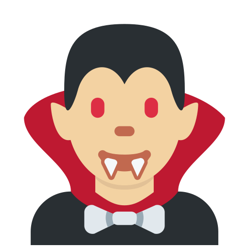 This is a variant of the Vampire Emoji with a medium-light skin tone applied. The Vampire: Medium-Light Skin Tone Emoji was added to the Skin tones category in 2017 as part of Emoji 5.0 standard. This is a fairly fresh emoji, so its support may be limited on some devices.