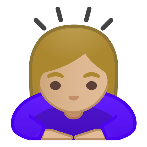 This is a female-gendered variant of the Person Bowing Emoji with a medium-light skin tone applied. The Woman Bowing: Medium-Light Skin Tone Emoji was added to the Skin tones category in 2016 as part of Emoji 4.0 standard. This is a fairly fresh emoji, so its support may be limited on some devices.