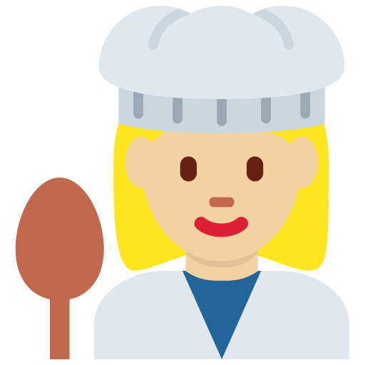 | Español | cocinera: tono de piel claro medio | chef, cocinera, mujer, pinche, tono de piel claro medio |
