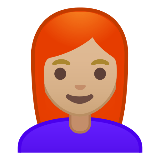 This is a variant of the Woman: Red Hair Emoji with a medium-light skin tone applied. The Woman: Medium-Light Skin Tone, Red Hair Emoji was added to the Skin tones category in 2018 as part of Emoji 11.0 standard. This is a very new emoji, so most likely it will not be displayed on most devices.