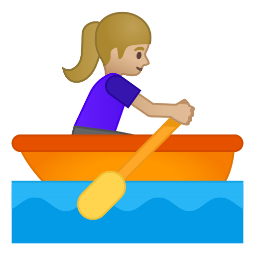 This is a female-gendered variant of the Rower Emoji / Person Rowing Boat Emoji with a medium-light skin tone applied. The Woman Rowing Boat: Medium-Light Skin Tone Emoji was added to the Skin tones category in 2016 as part of Emoji 4.0 standard. This is a fairly fresh emoji, so its support may be limited on some devices.