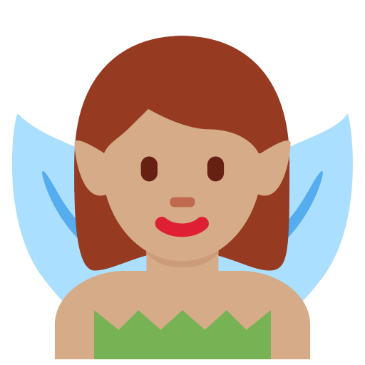 This is a variant of the Fairy Emoji with a medium skin tone applied. The Fairy: Medium Skin Tone Emoji was added to the Skin tones category in 2017 as part of Emoji 5.0 standard. This is a fairly fresh emoji, so its support may be limited on some devices.