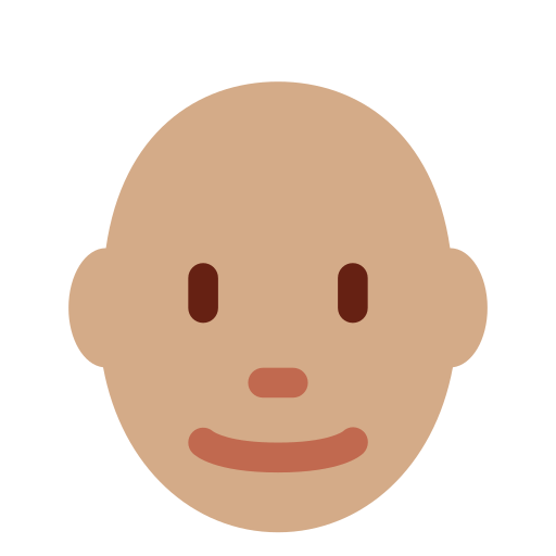 This is a variant of the Man: Bald Emoji with a medium skin tone applied. The Man: Medium Skin Tone, Bald Emoji was added to the Skin tones category in 2018 as part of Emoji 11.0 standard. This is a very new emoji, so most likely it will not be displayed on most devices.