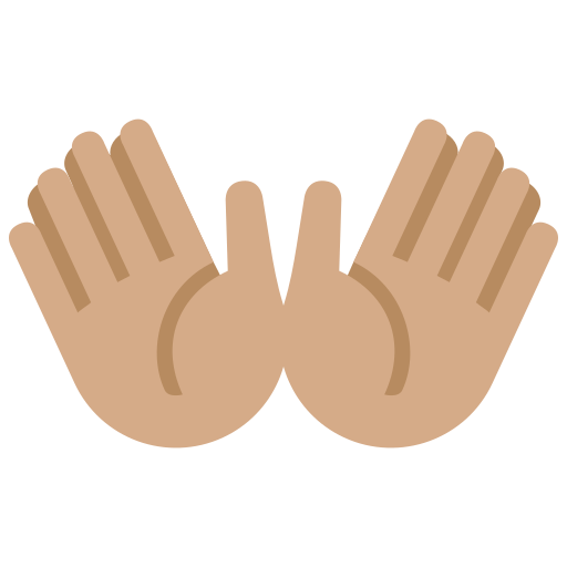 This is a variant of the Open Hands Emoji with a medium skin tone applied. The Open Hands: Medium Skin Tone Emoji was added to the Skin tones category in 2016 as part of Emoji 3.0 standard. This is a fairly fresh emoji, so its support may be limited on some devices.