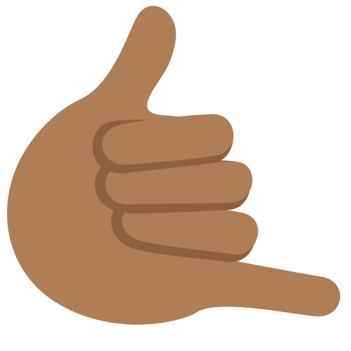 This is a variant of the Call Me Hand Emoji with a medium-dark skin tone applied. The Call Me Hand: Medium-Dark Skin Tone Emoji was added to the Skin tones category in 2016 as part of Emoji 3.0 standard. This is a fairly fresh emoji, so its support may be limited on some devices.