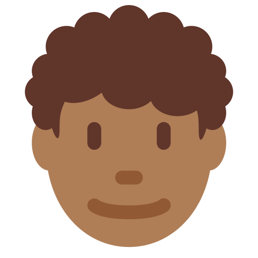 Man: Medium-Dark Skin Tone, Curly Hair, Emoji One style