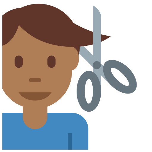 This is a male-gendered variant of the Haircut Emoji / Person Getting Haircut Emoji with a medium-dark skin tone applied. The Man Getting Haircut: Medium-Dark Skin Tone Emoji was added to the Skin tones category in 2016 as part of Emoji 4.0 standard. This is a fairly fresh emoji, so its support may be limited on some devices.