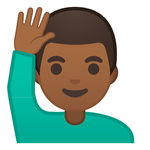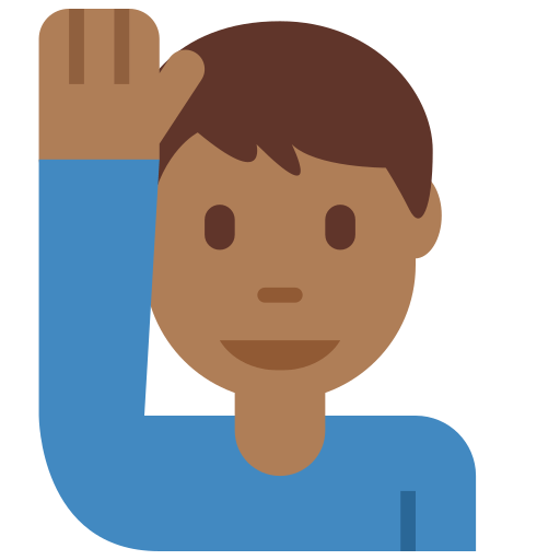 This is a male-gendered variant of the Hand Up Emoji / Person Raising Hand Emoji with a medium-dark skin tone applied. The Man Raising Hand: Medium-Dark Skin Tone Emoji was added to the Skin tones category in 2016 as part of Emoji 4.0 standard. This is a fairly fresh emoji, so its support may be limited on some devices.