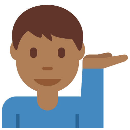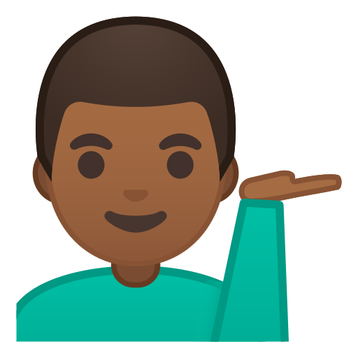 This is a male-gendered variant of the Sassy Emoji / Person Tipping Hand Emoji with a medium-dark skin tone applied. The Man Tipping Hand: Medium-Dark Skin Tone Emoji was added to the Skin tones category in 2016 as part of Emoji 4.0 standard. This is a fairly fresh emoji, so its support may be limited on some devices.