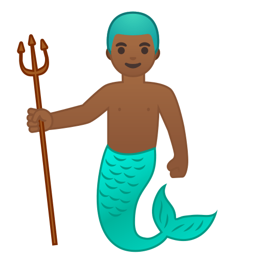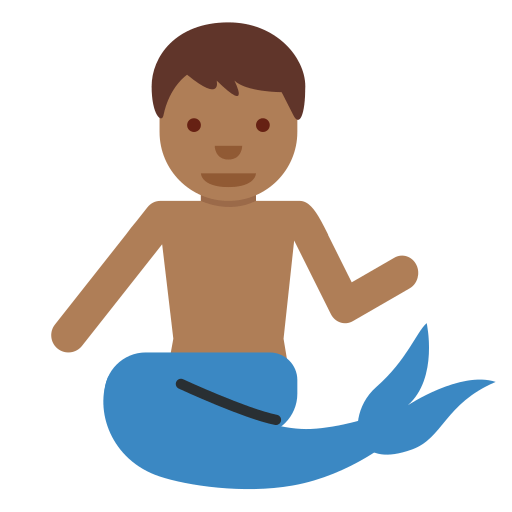 This is a male-gendered variant of the Merperson Emoji with a medium-dark skin tone applied. The Merman: Medium-Dark Skin Tone Emoji was added to the Skin tones category in 2017 as part of Emoji 5.0 standard. This is a fairly fresh emoji, so its support may be limited on some devices.