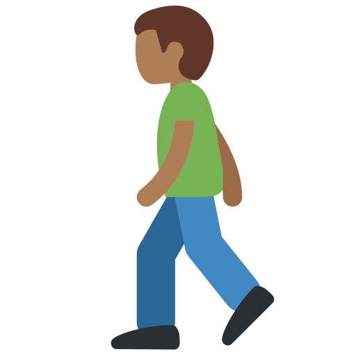 This is a variant of the Pedestrian Emoji / Person Walking Emoji with a medium-dark skin tone applied. The Person Walking: Medium-Dark Skin Tone Emoji was added to the Skin tones category in 2016 as part of Emoji 3.0 standard. This is a fairly fresh emoji, so its support may be limited on some devices.