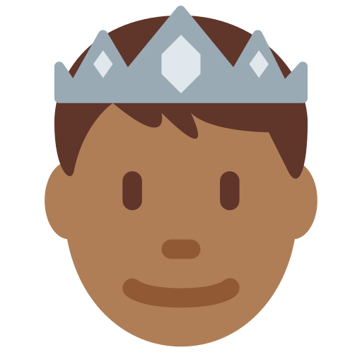This is a variant of the Prince Emoji with a medium-dark skin tone applied. The Prince: Medium-Dark Skin Tone Emoji was added to the Skin tones category in 2016 as part of Emoji 3.0 standard. This is a fairly fresh emoji, so its support may be limited on some devices.