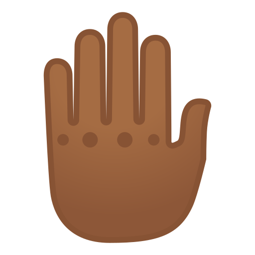 This is a variant of the Raised Back of Hand Emoji with a medium-dark skin tone applied. The Raised Back of Hand: Medium-Dark Skin Tone Emoji was added to the Skin tones category in 2016 as part of Emoji 3.0 standard. This is a fairly fresh emoji, so its support may be limited on some devices.