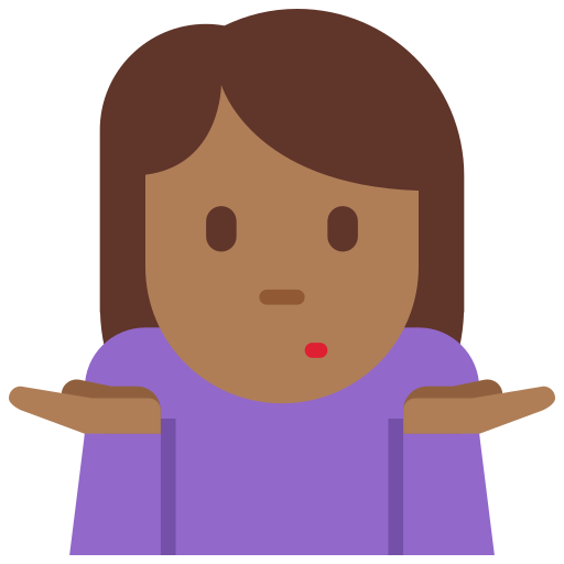 This is a variant of the Shrug Emoji / Person Shrugging Emoji with a medium-dark skin tone applied. The Person Shrugging: Medium-Dark Skin Tone Emoji was added to the Skin tones category in 2016 as part of Emoji 3.0 standard. This is a fairly fresh emoji, so its support may be limited on some devices.