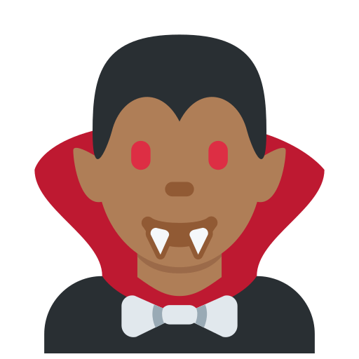 This is a variant of the Vampire Emoji with a medium-dark skin tone applied. The Vampire: Medium-Dark Skin Tone Emoji was added to the Skin tones category in 2017 as part of Emoji 5.0 standard. This is a fairly fresh emoji, so its support may be limited on some devices.