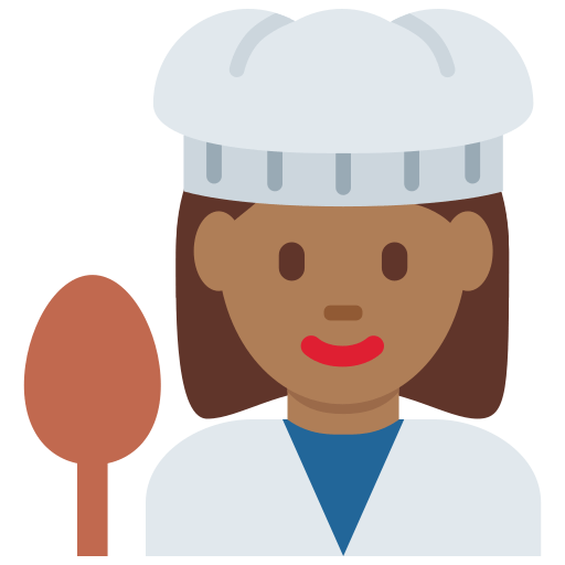 | Español | cocinera: tono de piel oscuro medio | chef, cocinera, mujer, pinche, tono de piel oscuro medio |