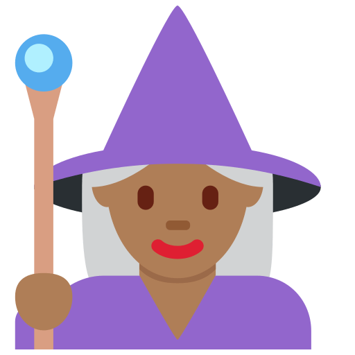 | Español | maga: tono de piel oscuro medio | bruja, hechicera, maga, tono de piel oscuro medio |