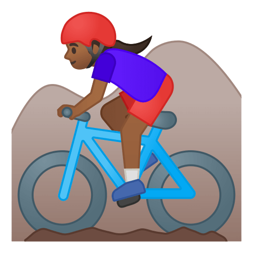 This is a female-gendered variant of the Mountain Biker Emoji / Person Mountain Biking Emoji with a medium-dark skin tone applied. The Woman Mountain Biking: Medium-Dark Skin Tone Emoji was added to the Skin tones category in 2016 as part of Emoji 4.0 standard. This is a fairly fresh emoji, so its support may be limited on some devices.