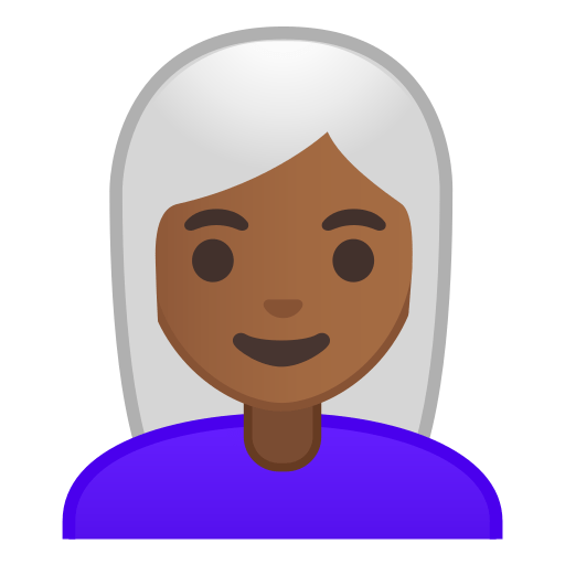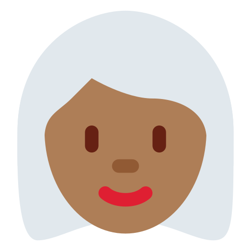 This is a variant of the Woman: White Hair Emoji with a medium-dark skin tone applied. The Woman: Medium-Dark Skin Tone, White Hair Emoji was added to the Skin tones category in 2018 as part of Emoji 11.0 standard. This is a very new emoji, so most likely it will not be displayed on most devices.