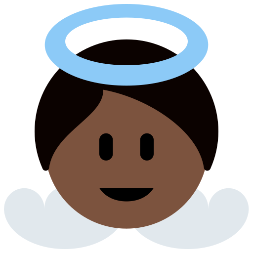 This is a variant of the Baby Angel Emoji with a dark skin tone applied. The Baby Angel: Dark Skin Tone Emoji was added to the Skin tones category in 2016 as part of Emoji 3.0 standard. This is a fairly fresh emoji, so its support may be limited on some devices.
