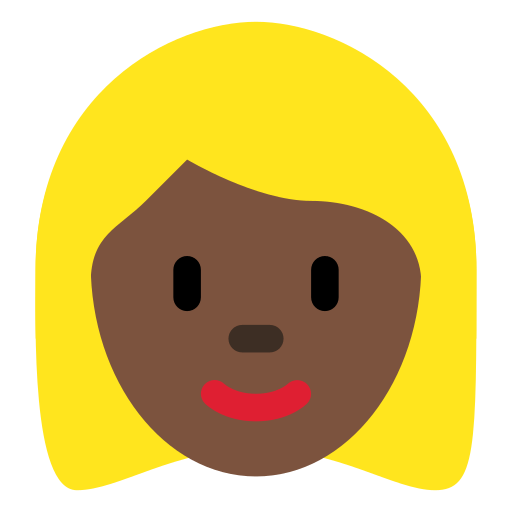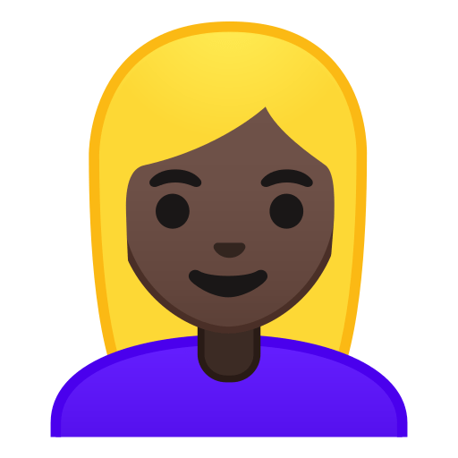 This is a female-gendered variant of the Blonde Emoji / Person: Blond Hair Emoji with a dark skin tone applied. The Woman: Dark Skin Tone, Blond Hair Emoji was added to the Skin tones category in 2016 as part of Emoji 4.0 standard. This is a fairly fresh emoji, so its support may be limited on some devices.