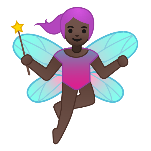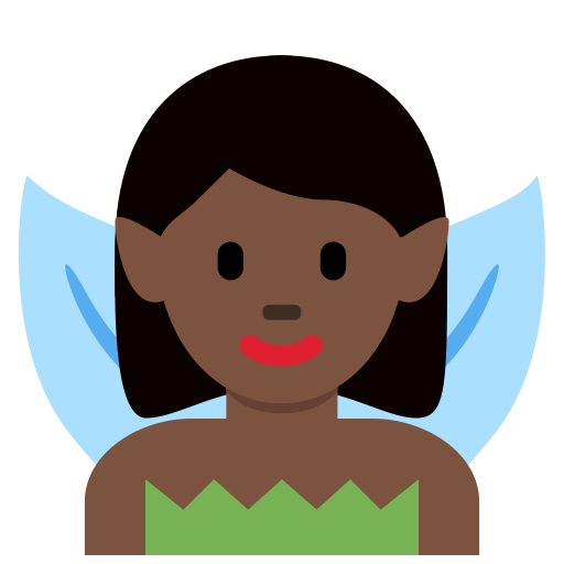 This is a variant of the Fairy Emoji with a dark skin tone applied. The Fairy: Dark Skin Tone Emoji was added to the Skin tones category in 2017 as part of Emoji 5.0 standard. This is a fairly fresh emoji, so its support may be limited on some devices.