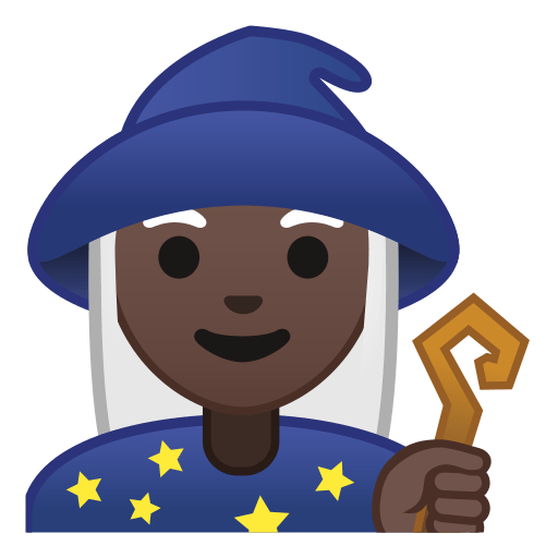 This is a variant of the Mage Emoji with a dark skin tone applied. The Mage: Dark Skin Tone Emoji was added to the Skin tones category in 2017 as part of Emoji 5.0 standard. This is a fairly fresh emoji, so its support may be limited on some devices.