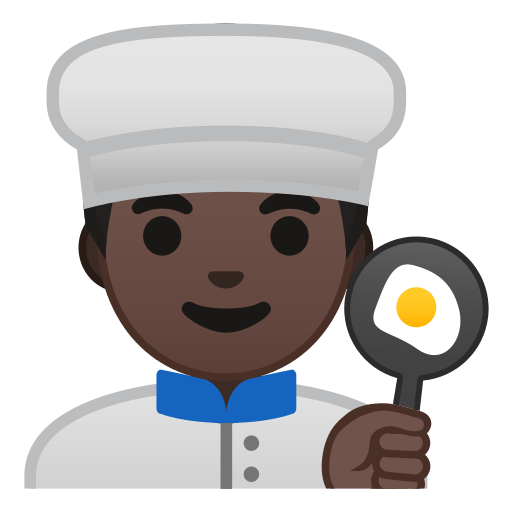 This is a variant of the Man Cook Emoji with a dark skin tone applied. The Man Cook: Dark Skin Tone Emoji was added to the Skin tones category in 2016 as part of Emoji 4.0 standard. This is a fairly fresh emoji, so its support may be limited on some devices.