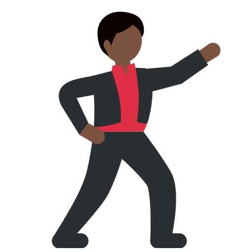 This is a variant of the Man Dancing Emoji with a dark skin tone applied. The Man Dancing: Dark Skin Tone Emoji was added to the Skin tones category in 2016 as part of Emoji 3.0 standard. This is a fairly fresh emoji, so its support may be limited on some devices.