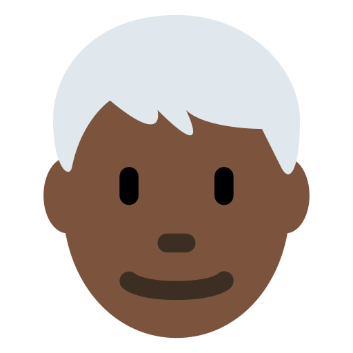This is a variant of the Man: White Hair Emoji with a dark skin tone applied. The Man: Dark Skin Tone, White Hair Emoji was added to the Skin tones category in 2018 as part of Emoji 11.0 standard. This is a very new emoji, so most likely it will not be displayed on most devices.