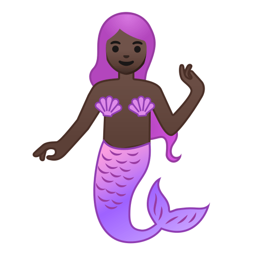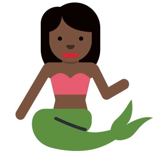This is a female-gendered variant of the Merperson Emoji with a dark skin tone applied. The Mermaid: Dark Skin Tone Emoji was added to the Skin tones category in 2017 as part of Emoji 5.0 standard. This is a fairly fresh emoji, so its support may be limited on some devices.