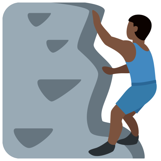 This is a variant of the Person Climbing Emoji with a dark skin tone applied. The Person Climbing: Dark Skin Tone Emoji was added to the Skin tones category in 2017 as part of Emoji 5.0 standard. This is a fairly fresh emoji, so its support may be limited on some devices.