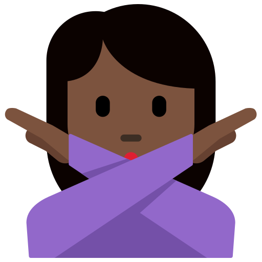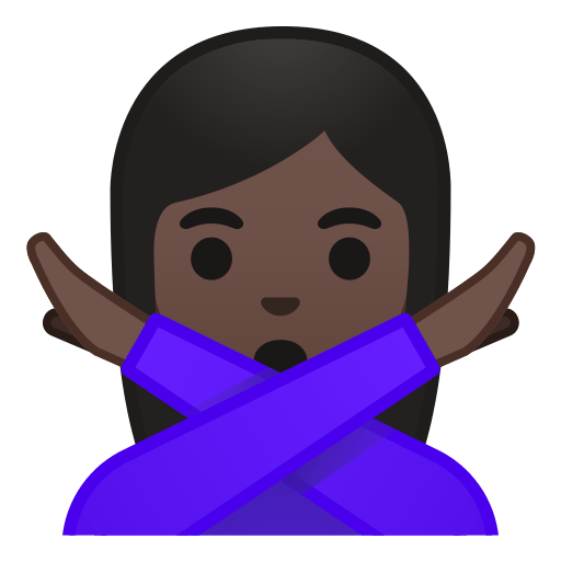 This is a variant of the Person Gesturing No Emoji with a dark skin tone applied. The Person Gesturing No: Dark Skin Tone Emoji was added to the Skin tones category in 2016 as part of Emoji 3.0 standard. This is a fairly fresh emoji, so its support may be limited on some devices.
