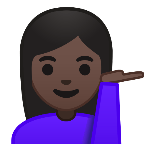 This is a variant of the Sassy Emoji / Person Tipping Hand Emoji with a dark skin tone applied. The Person Tipping Hand: Dark Skin Tone Emoji was added to the Skin tones category in 2016 as part of Emoji 3.0 standard. This is a fairly fresh emoji, so its support may be limited on some devices.